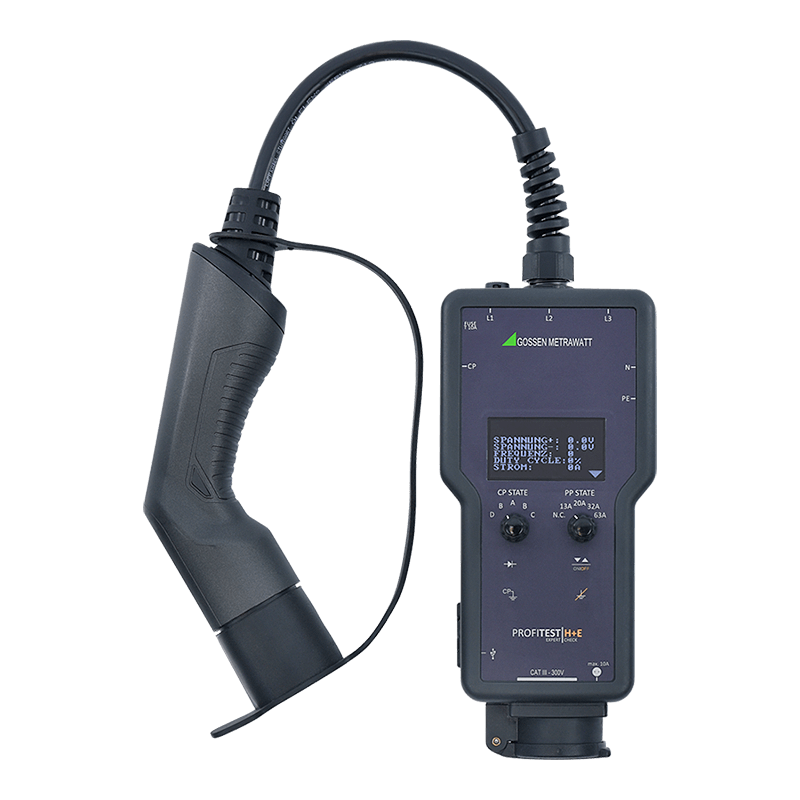 Die zunehmende Zahl von Elektrofahrzeugen stellt auch neue Anforderungen an das historisch gewachsene Stromversorgungsnetz und die Ladeinfrastruktur dar. Mit dem PROFITEST MF in Verbindung mit einem Adapter kann der Betriebszustand eines Elektrofahrzeugs an E-Ladesäulen nach IEC 61851-1 geprüft werden.