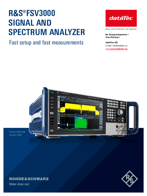 Für die anspruchsvolle und schnelle Signalanalyse im Labor und in der Produktion: Mit dem Signal- und Spektrumanalysator FSV3004 lassen sich selbst komplexe Messanwendungen schnell und einfach konfigurieren, sodass Ihnen die Messergebnisse in kürzester Zeit vorliegen. Via Multitouch-Display mit grafischer Benutzeroberfläche können die HF-Parameter intuitiv angepasst werden; die Auto-Set-Funktion unterstützt Sie bei der automatischen Einstellung der wichtigsten Settings für Frequenz, Pegel usw. Der SCPI-Recorder vereinfacht die Testprogramm-Entwicklung, und ereignisbasierte Aktionen helfen beim Debuggen seltener Signalerscheinungen eines DUT.