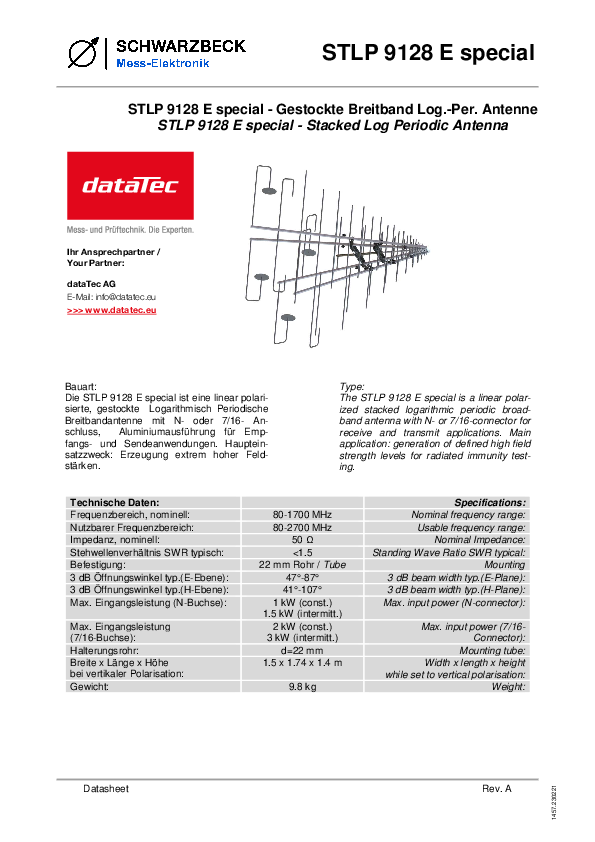 Schwarzbeck STLP 9128 E SP-N | Analog STLP 9128 E, gefaltetes Element, reduzierter Strukturwinkel, Antennendurchmesser kl. 150 cm, N-Stecker, Empfohlener Adapter: AA 9209.
