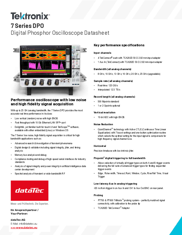 DPO714AX 7-BW-8000 | 8 GHz Bandbreite, installierte Option für DPO7 Oszilloskop