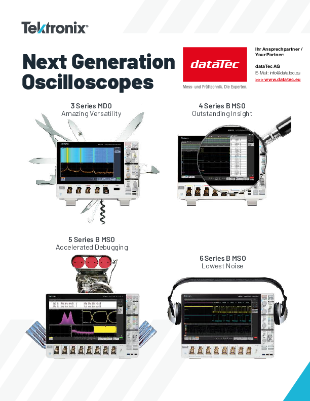 Die Oszilloskope der Tektronix MSO 4B Serie kombinieren Leistung und Analysefunktionen, um die meisten technischen Herausforderungen mit einer branchenführenden intuitiven Benutzeroberfläche zu bewältigen.
